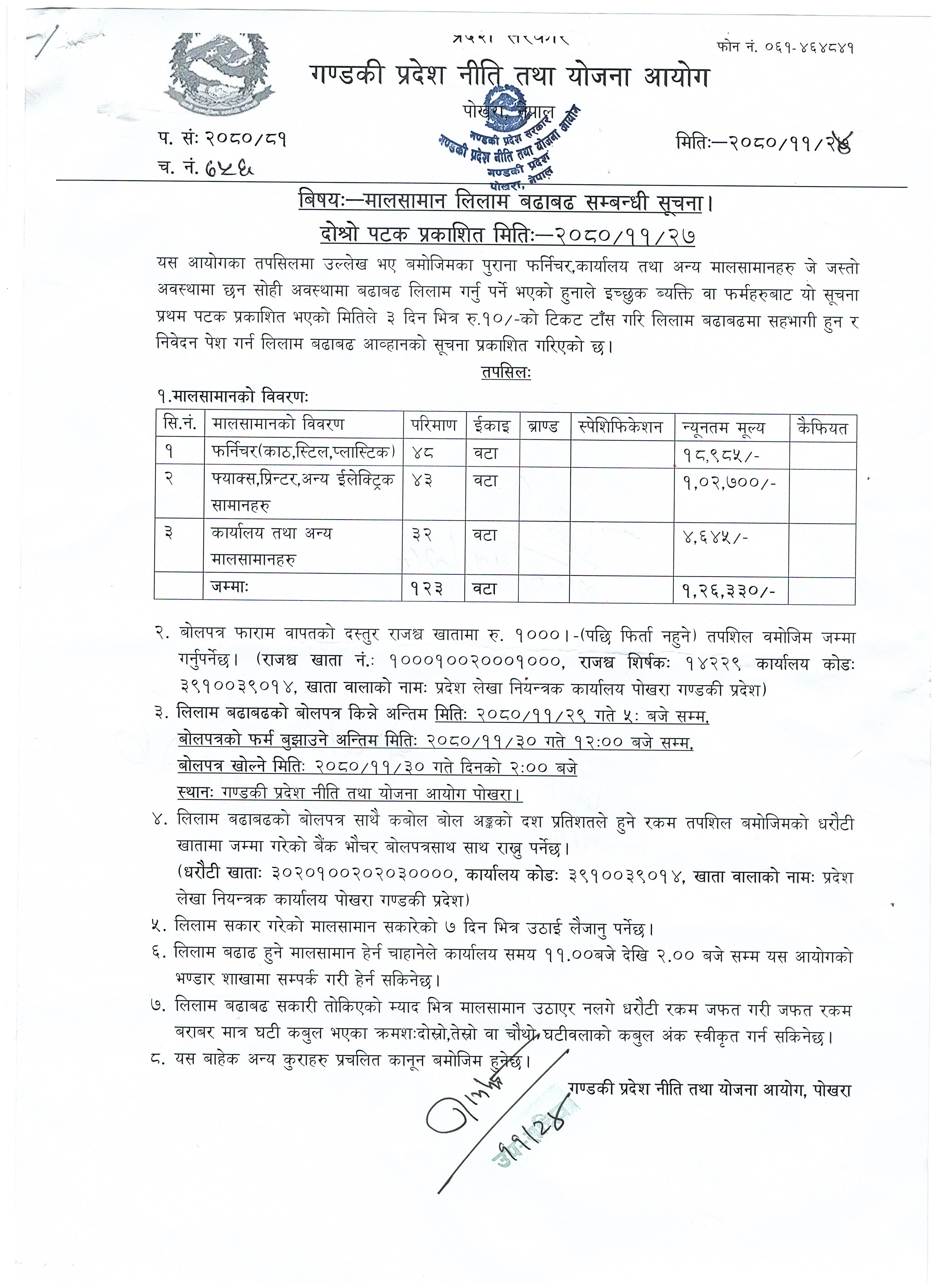 Download: मालसामान लिलाम सम्बन्धी सूचना